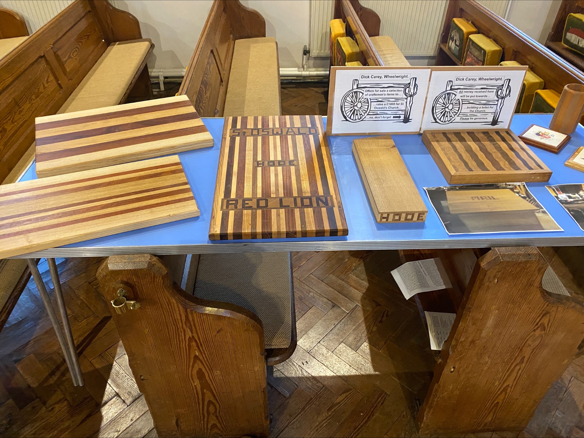 May we thank the many that attended this coffee morning, it is wonderful to be a part of the community that is Hooe that get together for these events. However, the real star was the workmanship and artistry that our wheelwright Dick Carey had for sale. All of the money that Dick received from this sale, he is donating to the St Oswald's Church Loo Appeal. This will be along with all the other money he has raised from the sales of his craftmanship, again quietly donating both his time and materials. Thank you Dick. Please click on the images below to explain and expand them.