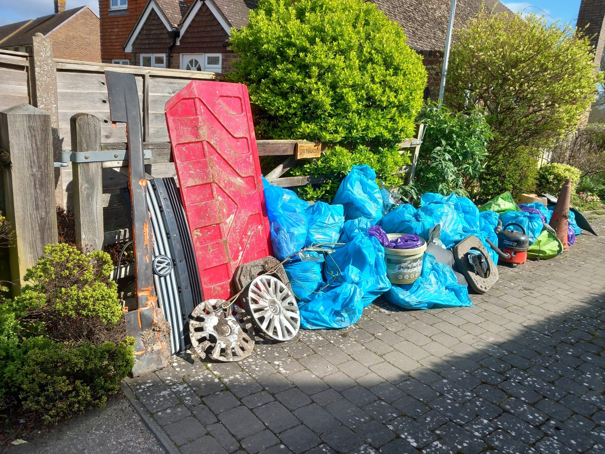 Every year HVCG organises the Village Community Clean up, and every year our lanes and verges give up loads of discarded rubbish. Please see below the photo of the wonderful members of our community, who thoroughly enjoyed taking part, and the photos of the rubbish that they collected, which WDC will soon collect. Please click on the images for a larger version and thank you all!!!