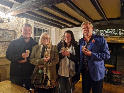 On Tuesday 4th November Hooe Stoolball Club held their annual end of season dinner at the Red Lion. We had a very enjoyable evening with some great food and much laughter (good job we were upstairs!) At the end of the meal we shared the statistics for the season, which were much improved on last year - we won 5 matches from 17 played against some very good teams. We also presented trophies for the players with the most runs, wickets and catches in both mixed and ladies matches. (Photos below)Most runs: (men) Jack Keeley (ladies) Jo DrylandMost Wickets: (men) Stephen Thompson (ladies) Jo DrylandMost catches: (men) Tobias Leader (who unfortunately couldn't be there) (ladies) Mel Dowling. Pictured with trophies: Jack, Mel, Jo and Stephen